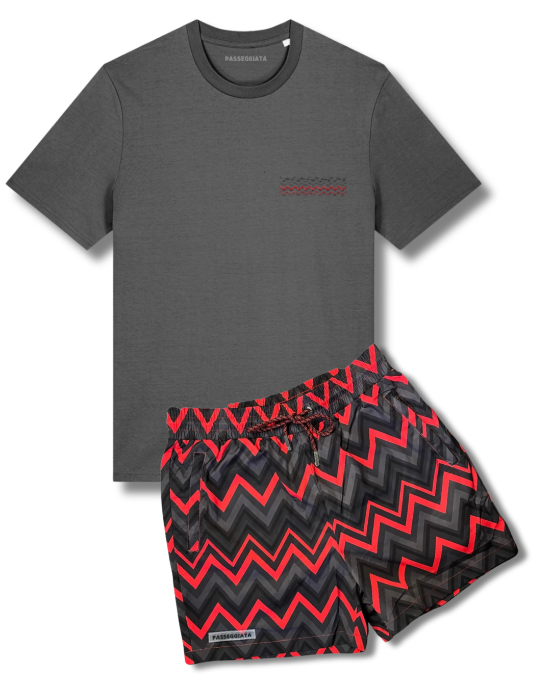 Zig Zag Premium Swim Shorts & Embroidered T-shirt Set (Grey)